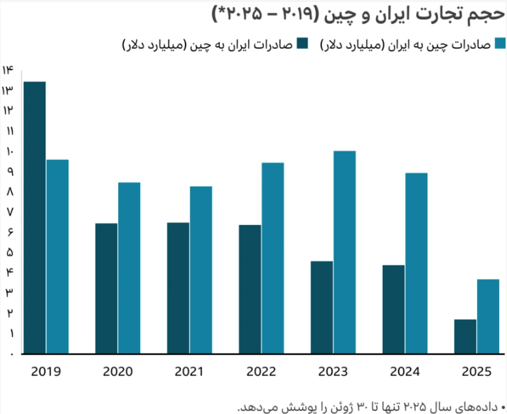 از روزچهارم تیر 1404 که عزیز نصیرزاده رفتش به چین تا خود امروز که جناب #پزشکیان اونجا هستند و قرار است که فردا در رژه ارتش چین شرکت بکنند، کانالهای تلگرامی پر شده اند از سفارش خرید تسلیحات چینی مثل هواپیمای نامرئی و تانک و موشک و غیره. ما که البت بخیل نیستیم ولی دوستان قبل از مالیدن صابون به دلشان نیم نگاهی هم به دو نمودار بالا بیاندازند که از قدیم گفته اند دو صد گفته چون نیم نمودار نیست. نمودار به زبان فارسی تجارت دو جانبه بین تهران و پکن را در بازه زمانی سالهای 2019 و2025 (البته تا تابستان 2025 یعنی تقریبا نصف سال) نشان می دهد. صادرات ایران به چین (که البته چیزی جز نفت زیر قیمت بازار نیست) از حدود 13 میلیارد دلار با یک سراشیبی لذت بخش رسیده به حدود 4 میلیارد دلار. یعنی در 6 سال گذشته چین کم کم داشته وابستگی اش را به نفت ایران کم می کرده که اگر روزی روزگاری اسنب بک فعال شدخیلی به اقتصادش فشار نیایید. واردات ایران هم از چین تقریبا ثابت بوده حدود 9-10میلیارد دلار. یعنی در حدود 6 سال پیش چینی ها به ما بدهکار بودند و الان ما به چینی ها بدهکاریم که به زبان خودمونی یعنی دست ما زیر تیغ اونهاست و نه دست اونها زیر تیغ ما. حالا شما هم برو تو خیابون و تلویزیون داد بزن که ما فلان جا رو میبندیم و نمی گذاریم از فلان جا نفت صادر بشود و بهمان. اما نمودار بعدی جالب تر است: نمودار تجارت متقابل بین تل آویو و پکن در همان بازه.همان طور که می بینید صادرات اسرائیل به چین در این بازه 6 ساله تقریبا ثابت مانده (در حدود 4-5 میلیارد دلار در سال) در حالیکه صادرات چین به اسرائیل با سیری صعودی از حدود 11 میلیارد دلار رسیده به نزدیک 14-15 میلیارد دلار در سال. در حالیکه چین از ایران فقط نفت می خره (مگه چیز دیگه ای هم داریم برای عرضه) صادرات اسرائیل به چین قسمت عمده ای از تکنولوژی مورد نیاز چین را تأمین می کند. حالا با این شرایط که بازار اسرائیل بر روی کالای چینی روز به روز بیشتر باز می شود وفرصتهای بیشتری در اختیار تولید کننده چینی قرار می دهد و از طرف دیگر بازار ایران تقریبا اشباع شده و اگر هم فضای خالی برای کسب و کار باشد اصولا پولی موجود نیست که طرف ایرانی از تولید کننده چینی خرید بکند و از طرف دیگرتر تکنولوژی های به کار رفته در صنایع نظامی چین وابستگی به اسرائیل دارند؛ اصولا چرا باید پکن بی بی راناراحت و سرخورده کند و آخرین تکنولوژی نظامی خود را در اختیار ایران بگذارد؟